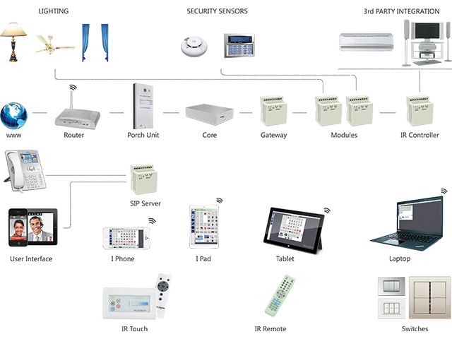 The Digital Dreams Series units are Ethernet based designed to be mounted on wall or near electrical junction box concealed in side the wall or on wall. The unit is consisting of Power Supply, Control section. The unit is self powered with single phase supply used locally. LED Indicators inside the unit shows the status of CPU Unit. IR Receiver is used to receive various individual remote IR signals to learn command. The device supports 4 Hybrid IR ports which can be used in patch / blaster mode.