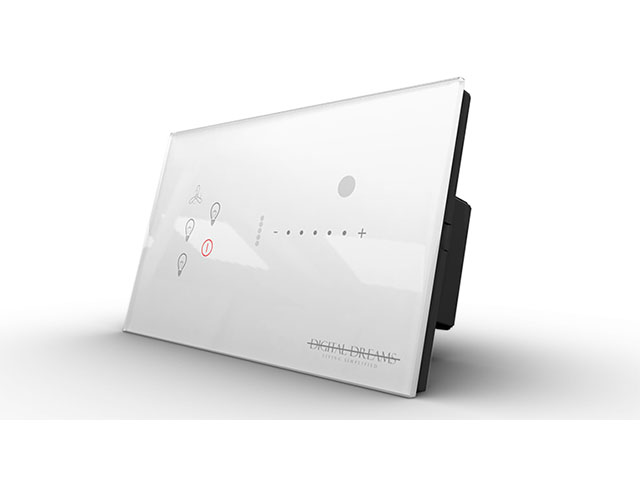Digital Dreams Touch switches is a highly innovative touch sensitive light switch for homes replacing your conventional switches with a sleek and refined design which simplifies life and makes your home more smart & efficient. The basic idea behind it is simplicity and ease of use. It controls lights, blinds, scenes, … in a simple and intuitive way while providing a platform which can be expanded to comprehensive home / lighting automation using BLE / Wifi / Network. It offers various combinations of lighting loads such as capacitive FAN dimming, phase dimming, curtain / relay in 3 different variants. 1dot3, 1dot5, 2dot6 All of the above have an integrated back-lit LED for lighting load status and navigational LED for identifying the touch switch in the dark.
